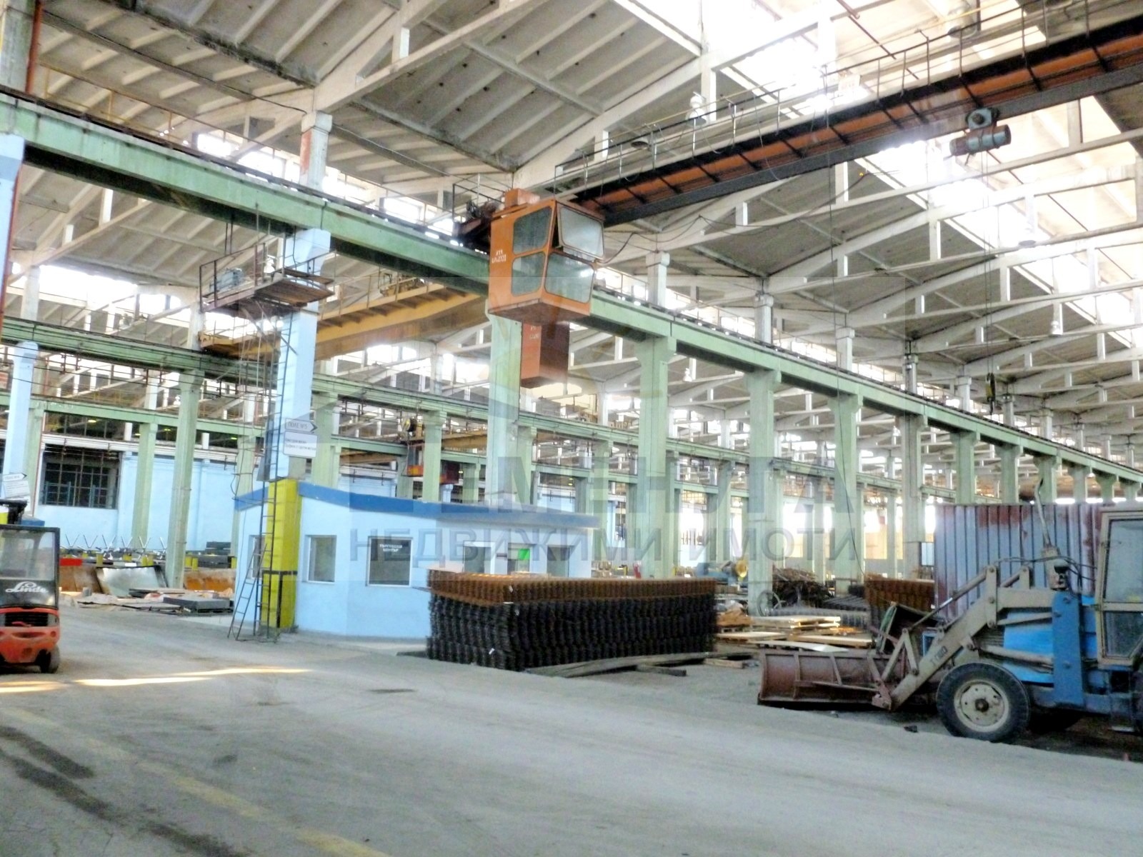 Промишлени помещения подходящи за склад и производство от 972 до 1288м2 с височина 12м и светъл отвор 18м в производствено складова база с охрана и контролиран достъп, мостов кран 5 тона, ЖП линия с възможност за товаро разтоварни дейности и ползване на маневрен локомотив, ТИР достъп , 60 тонен кантар за тирове и 120 тонен за ЖП транспорт, ток, вода, канал, СОТ, интернет.