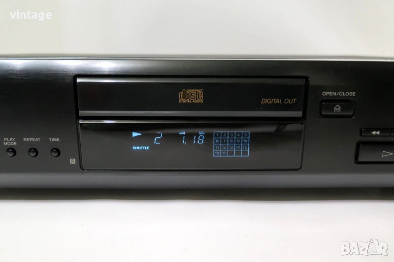 Стерео компакт диск плеър, отличен технически, много добър външен вид, известни козметични забележки. Разчита матрични и записани аудио дискове. Дистанционно управление не е налично. Приложените снимки и видео са реални!