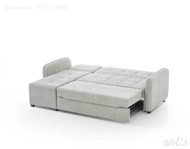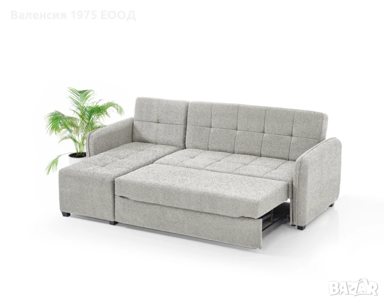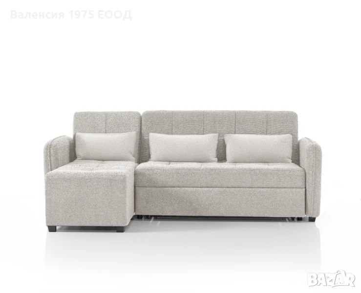 Диванът е с изтеглящ механизъм. Универсален- посоката се определя от вас. С три декоративни възглавници.