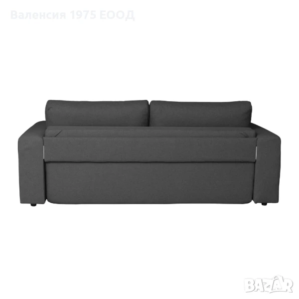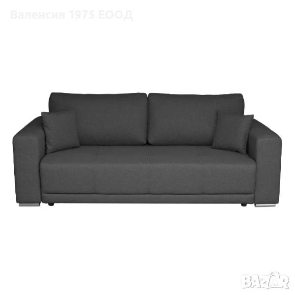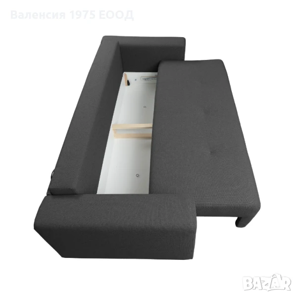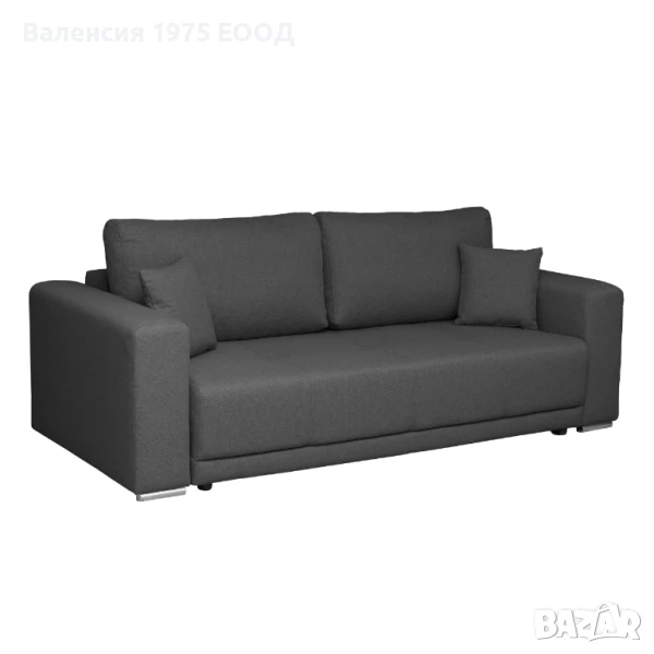 Диванът е с изтеглящ механизъм, с ракла и четири декоративни възглавници.
