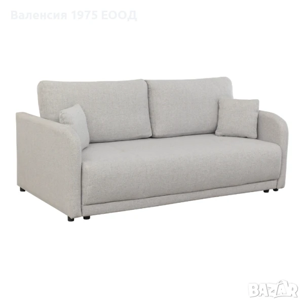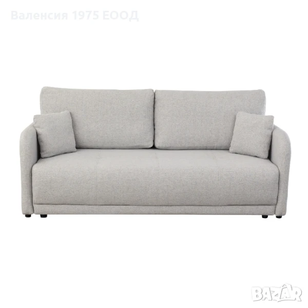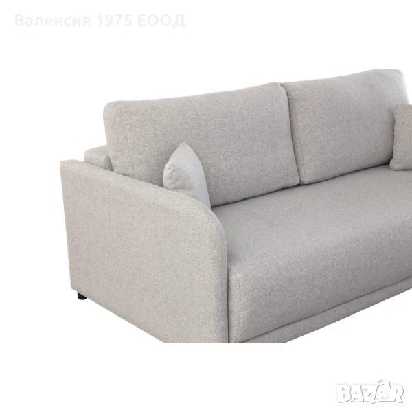 Диванът е с изтеглящ механизъм, с ракла и четири декоративни възглавници.
