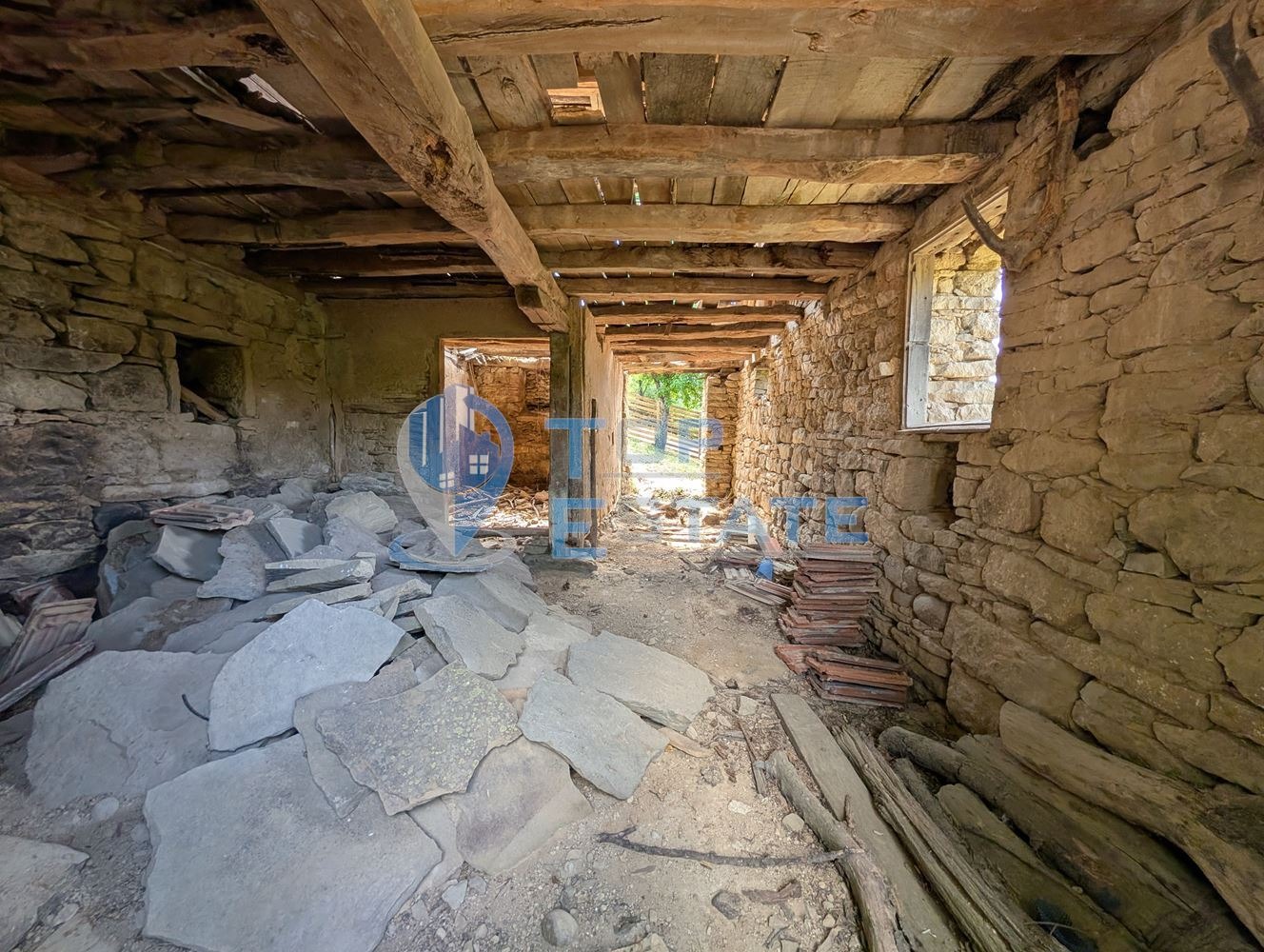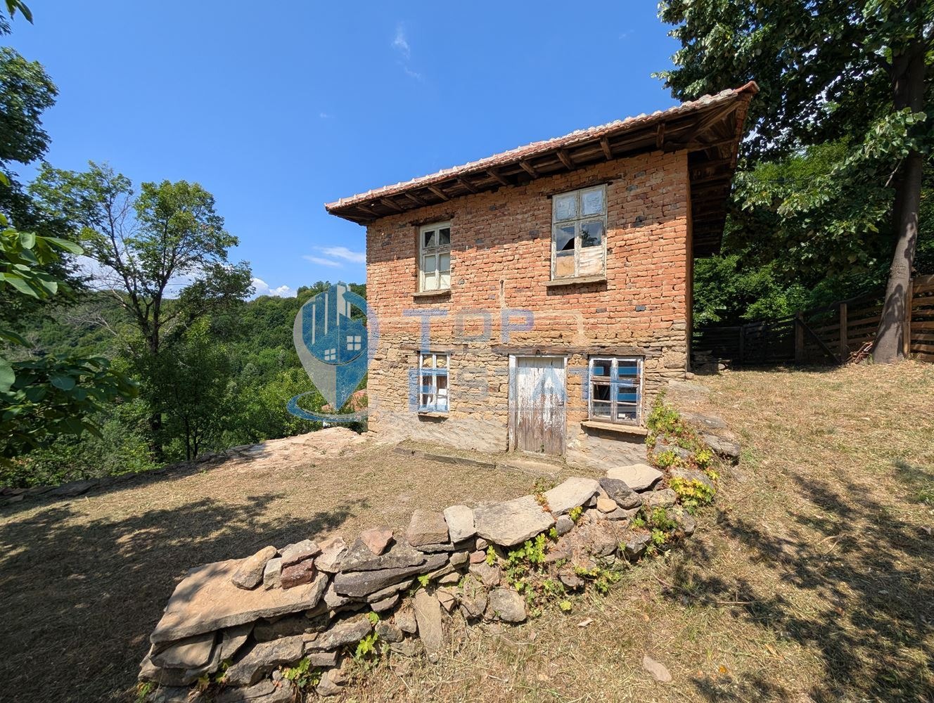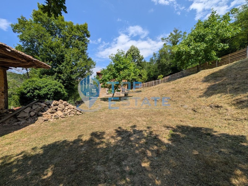 Трявна и на 24 км от град Габрово. Предлаганият имот се намира в най-високата част на селото, надморската височина е около 740 метра и достъпът е по асфалтов път. Къщата е със застроена площ 54 кв. м на два етажа с каменни основи. Всеки етаж има собствен вход, като има и вътрешно стълбище, свързващо двата етажа. Всеки етаж се състои от входно антре и три стаи, които могат да се обособят по различни начини. Прилежащото дворно място е с площ 915 кв. м, с южно изложение, като заедно към този парцел е включен и допълнителен парцел с площ 2091 кв. м, в който има множество овощни дръвчета. Има и допълнителна стопанска постройка (плевня) с площ 58 кв. м с каменни основи, тя може да бъде преустроена в барбекю зона/механа/лятна кухня. От къщата, плевнята и цялото дворно място се открива нескриеваема и уникална панорамна гледка към билото на Стара планина. Имотът е изключително подходящ за хора, търсещи уединение и спокойствие в Балкана, като е подходящ, както за лично ползване, така и за развитие на бизнес - къща за гости. Номер на оферта: 3205. We speak English and German.