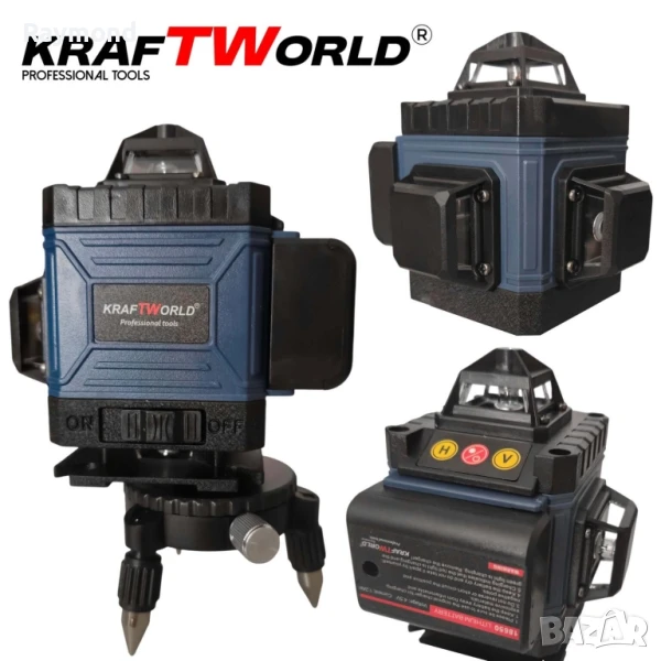 Акумулаторен комплект KraftWorld 5в1 – Лазерен Нивелир, Гайковерт – Винтоверт, Перфоратор, Ъглошлайф