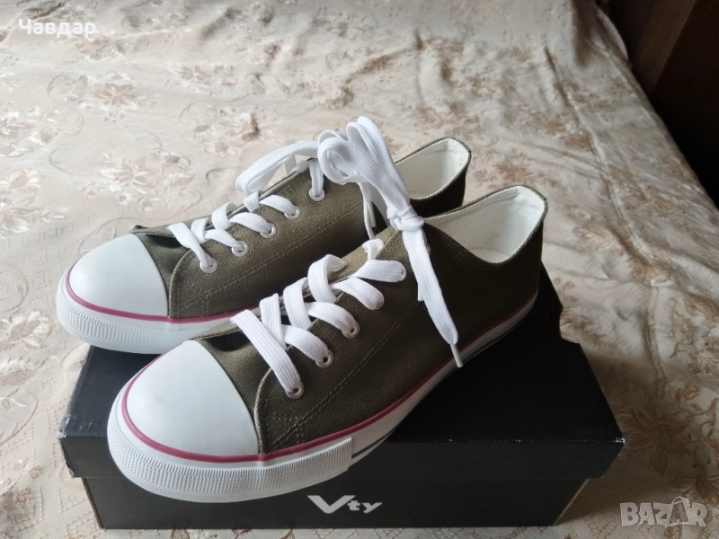 2. Кецове Victory (ниски). Цвят - зелен (каки), материал - текстил. Размер - 44, стелка - 28,6 см. Състояние - НОВИ в кутия. Цена - 15 евро (не подлежи на коментар).