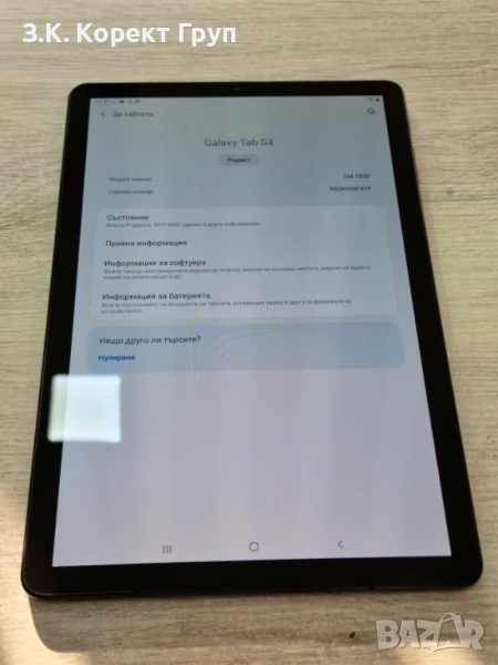 Продавам Samsung T835 Galaxy Tab S4 10.5 LTE 64GB в отлично състояние без забележки или следи от употреба. Гърба, екрана и лайсните нямат драскотини. Продава се без кутия или зарядно устройство.