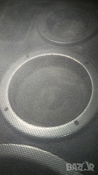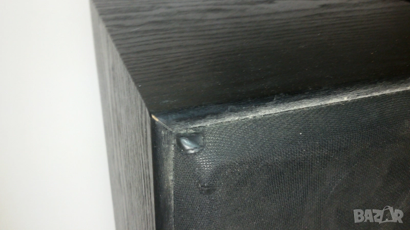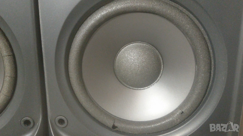 Опитах се да снимам самите говорители зад мрежичката (speaker grille/cloth). Мрежичката изглежда залепена за колонките. Първите няколко снимки на говорителите през мрежичката са на лявата колонка (лява на първата снимка, иначе не знам има ли значения коя ще бъде лява и дясна при слушане), а вторите няколко снимки (последните в обявата) са на дясната. На дясната средният говорител е смачкан в средата. Гледах клипчета как оправят такива говорители на някои колони, но не знам дали ще може да се оправи на този модел. И на двете колонки най-прашни са най-горните малки говорителчета.