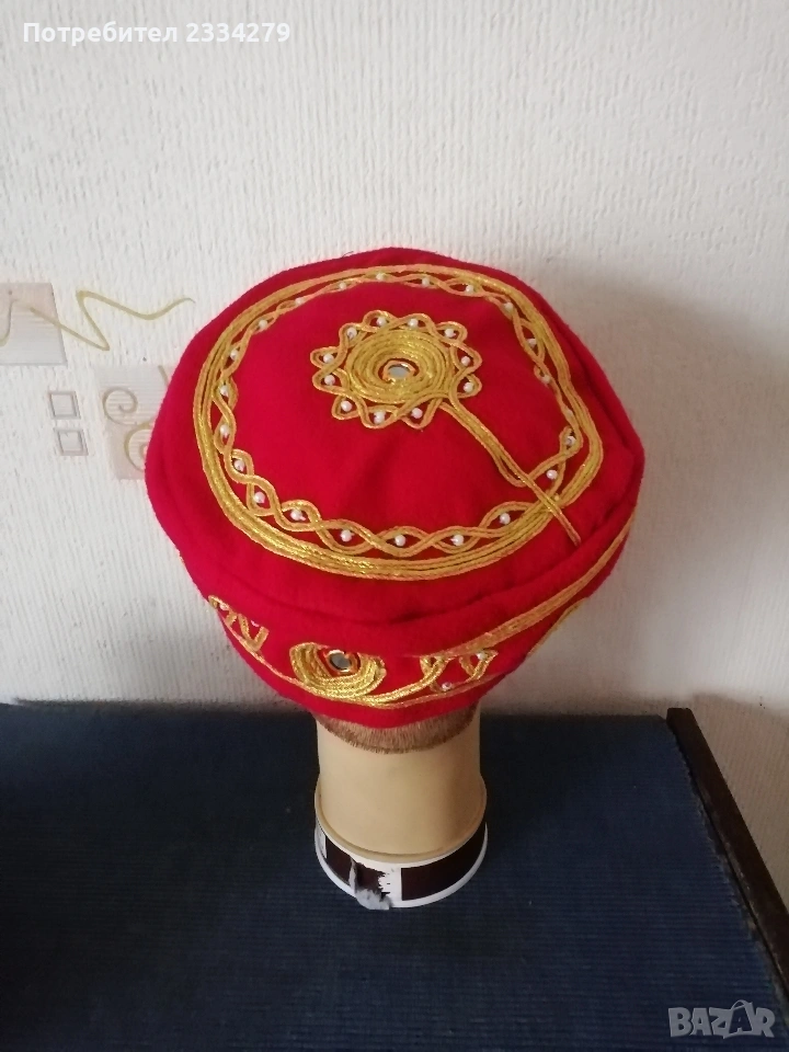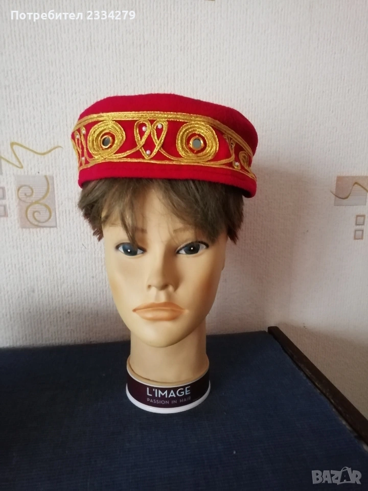 N:1 стари женски забрадки, отдолу със твърдо боне (нахлупва се), всичко е ръчна изработка, копринена кърпа, бродерия и декорация роза от плат и лента под брадата, цената за брой 20€.; N:2 женска фолклорна забрадка кърпа за глава, допълнение към народна-фолклорна носия., цена 9€. за брой.; N:3 фолклорна шапка, ръчна изработка с бродерии, цена 10€.