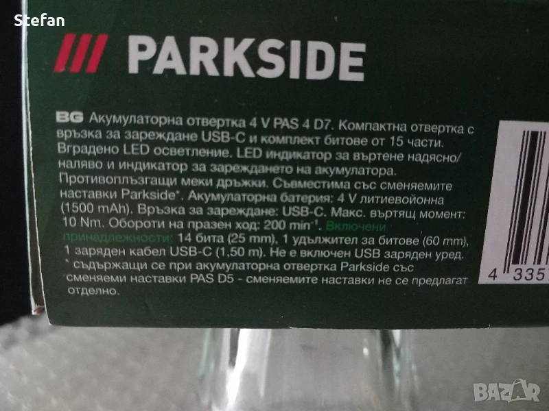 Акумулаторна отвертка PARKSIDE, снимка 1 - Отвертки - 51055634 Акумулаторна отвертка PARKSIDE, снимка 2 - Отвертки - 51055634 Акумулаторна отвертка PARKSIDE, снимка 3 - Отвертки - 51055634 Акумулаторна отвертка PARKSIDE, снимка 4 - Отвертки - 51055634 Акумулаторна отвертка PARKSIDE, снимка 5 - Отвертки - 51055634 Акумулаторна отвертка PARKSIDE, снимка 6 - Отвертки - 51055634 Акумулаторна отвертка PARKSIDE, снимка 7 - Отвертки - 51055634 1/7