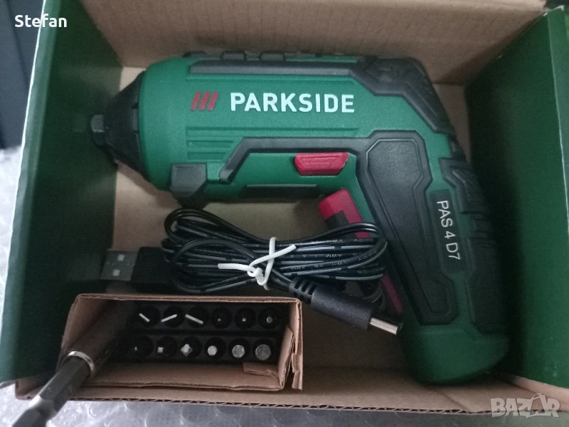 Нови акумулаторни отвертки PARKSIDE с вградена батерия ,USB кабел и аксесоари за работа. Двойно LED осветление. 3 години гаранция. Подробности на снимките.