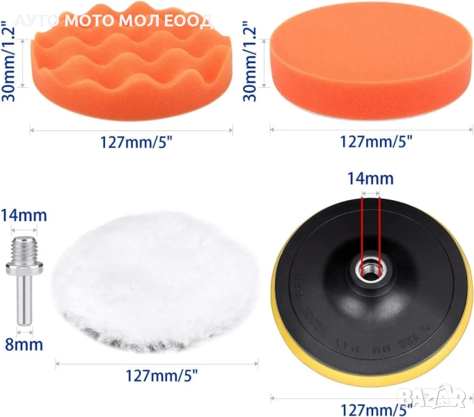 4 х 127мм. полиращи гъби с различна твърдост и структура.