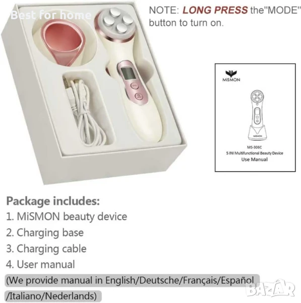 - Лесен за употреба: Лесен е за употреба. Това устройство има само 2 бутона за включване и изключване, както и за избор на различни режими и интензивност (5 нива). 10 минути на ден и кожата ви ще стане по-млада и по-еластична.