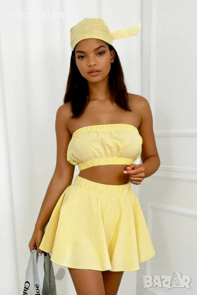 Лек и стилен комплект, създаден за летните дни! Комплектът включва пола/къси панталони, топ тип бандо и подходяща забрадка за глава. Изработен от дишащ, естествен памук, той осигурява комфорт дори в най-горещото време. Перфектен тоалет, готов за носене за плажа, града и ваканцията!