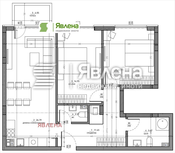 Явлена Ви представя перфектен имот с правилни форми, добри размери и отлично изложение. Ситуиран в нова сграда дело на опитен строител. Апартаментът се състои от: входно антре; дневна с кухненска част; две спални; две санитарни помещения; тераса. Възможност за покупка на гараж/ паркомясто с топла връзка. Локацията предлага множество градски транспорт,на пешеходно разстояние от най-големите университети; на метри от Национална спортна академия. Преобладаващото ниско строителство в района гарантира запазването на гледка към Витоша. (yavlenaCOM/159575).