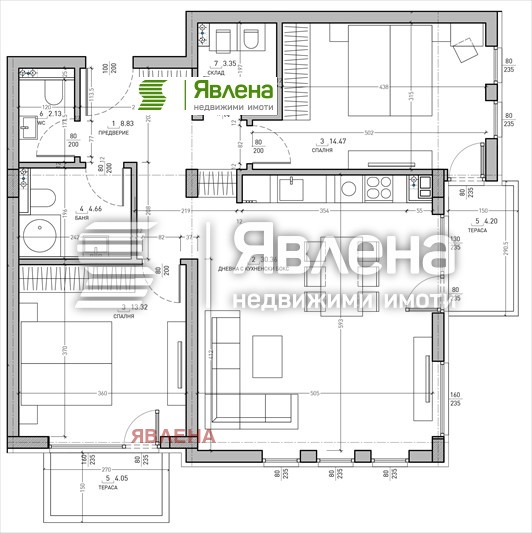 Явлена Ви представя перфектен имот с правилни форми, добри размери и отлично изложение. Ситуиран в нова сграда дело на опитен строител. Апартаментът се състои от: входно антре; дневна с кухненска част; две спални; две санитарни помещения; две тераси, склад. Възможност за покупка на гараж/ паркомясто с топла връзка. Локацията предлага множество градски транспорт,на пешеходно разстояние от най-големите университети; на метри от Национална спортна академия. Преобладаващото ниско строителство в района гарантира запазването на гледка към Витоша. (yavlenaCOM/159580).
