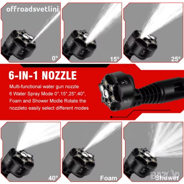 Почиствайте навсякъде без ограничения с нашата акумулаторна водоструйка 200 bar – мощна, безчеткова и напълно мобилна! Със своите 3500W, дисплей, 3 регулируеми скорости и 6 режима на струя, тази водоструйка премахва и най-упоритата мръсотия. Включва 2 батерии, зарядно, филтър, четка, резервоар за препарат и практична чанта за съхранение и пренасяне. С нея постигате професионални резултати у дома, в градината или на път. Идеален избор за автомобили, тераси, мебели и още!