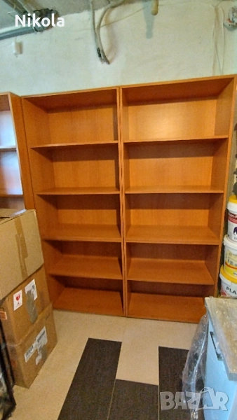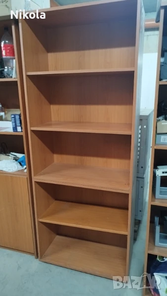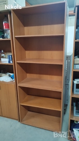 Продавам етажерки 80/203см или офис шкафове с 5 рафта и дълбочина на рафтовете 38,5см. Шкафовете са конструктивно здрави в отлично състояние. Етажерката е подходяща за подреждане на книги и документи за офис или за дома Може да се раздели на две части като едната е висока 83см а втората 120см. Материала е ПДЧ. Цвета е череша. Етажерките са 4бр, цената от 85€ за един брой.