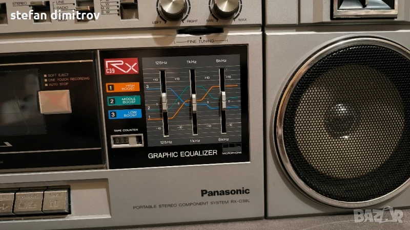 Panasonic RX-C39L касетофон с отделящи се колони. Портативна стерео система, японско производство. Касетофона свири много приятно работи основно като радио,здрава антена .Забабележка като се върти скалата за станциите честотите се сменят но индикаторната лента несе мърда .Касетното гнездо като се пусне касетка свири но събира лентата и я мачка. Има работещ еквилайзер. Касетофона работи с батерииКасетофона има и AUX вход за подробности 0899577637