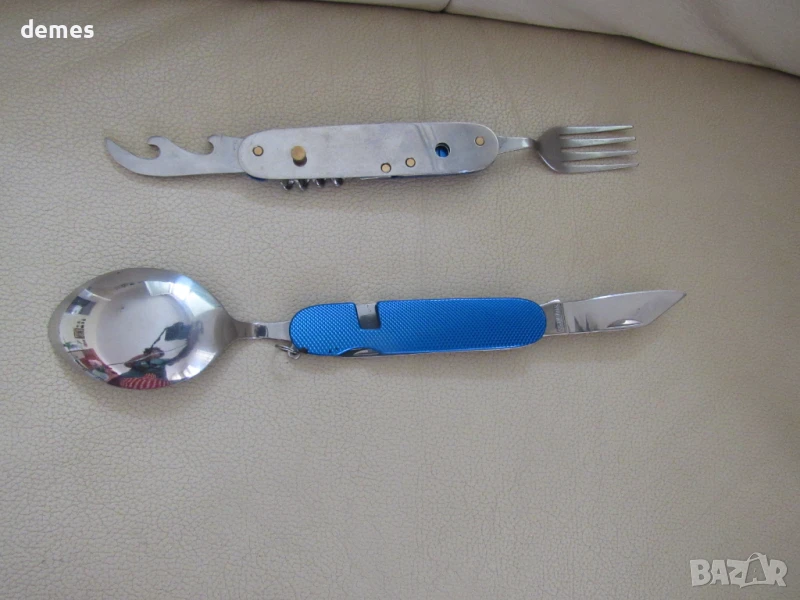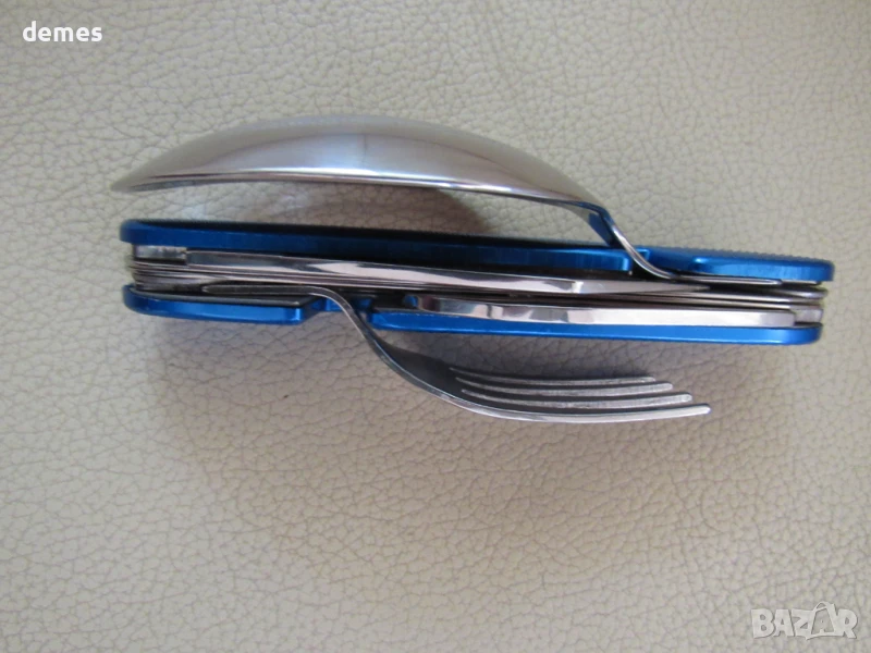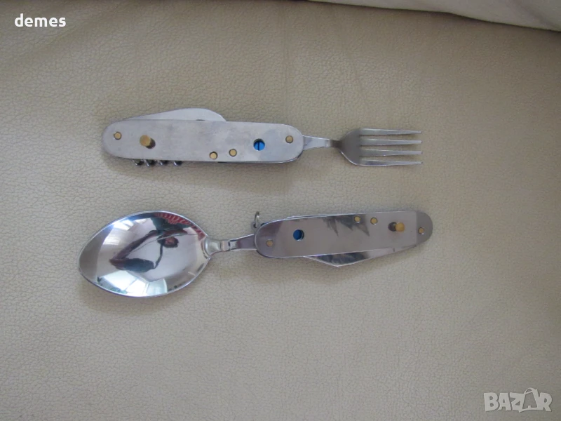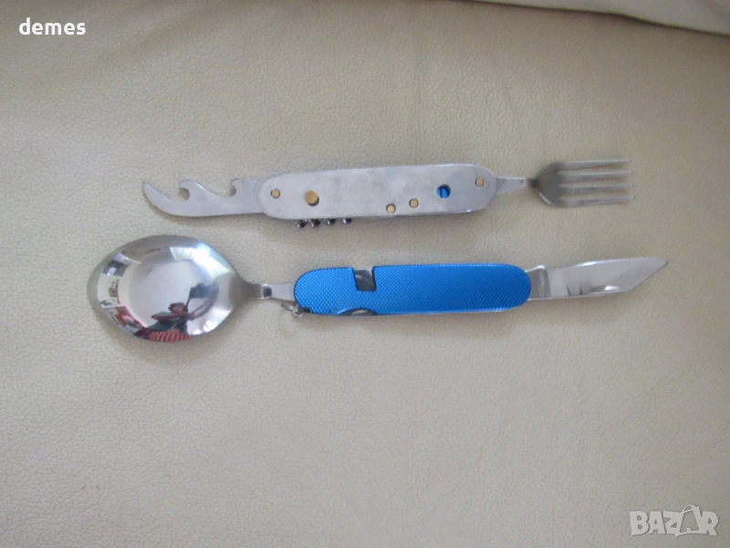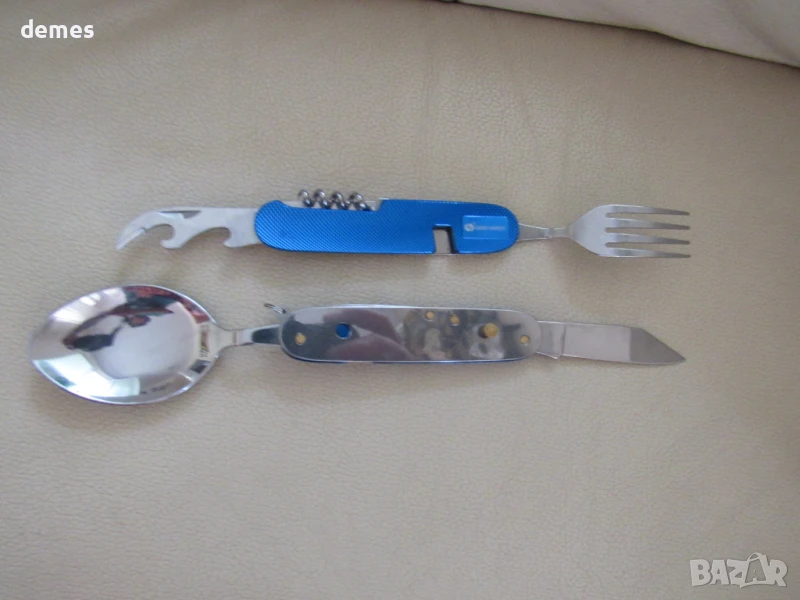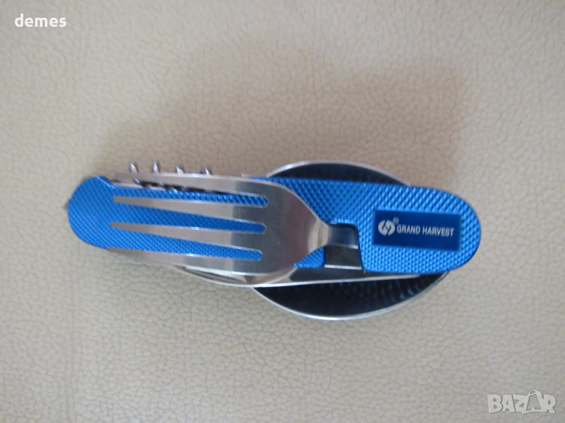 Комплектът включва вилица, лъжица, тирбушон, отварачка.