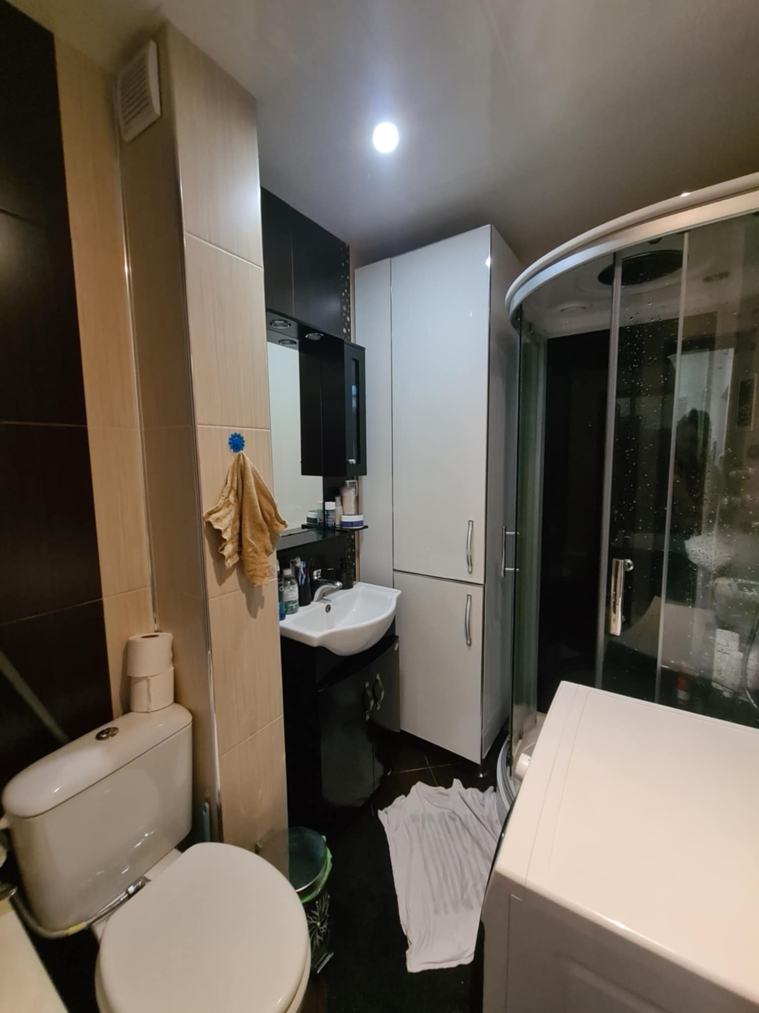 Баня с тоалетна завършена със стилна санитария и душ кабина