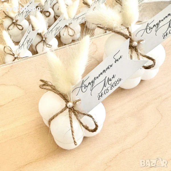 От нежни ангелчета и мечета до стилни фигурки с персонализиран надпис – всеки артикул е уникален, създаден специално за вас и вашите гости.