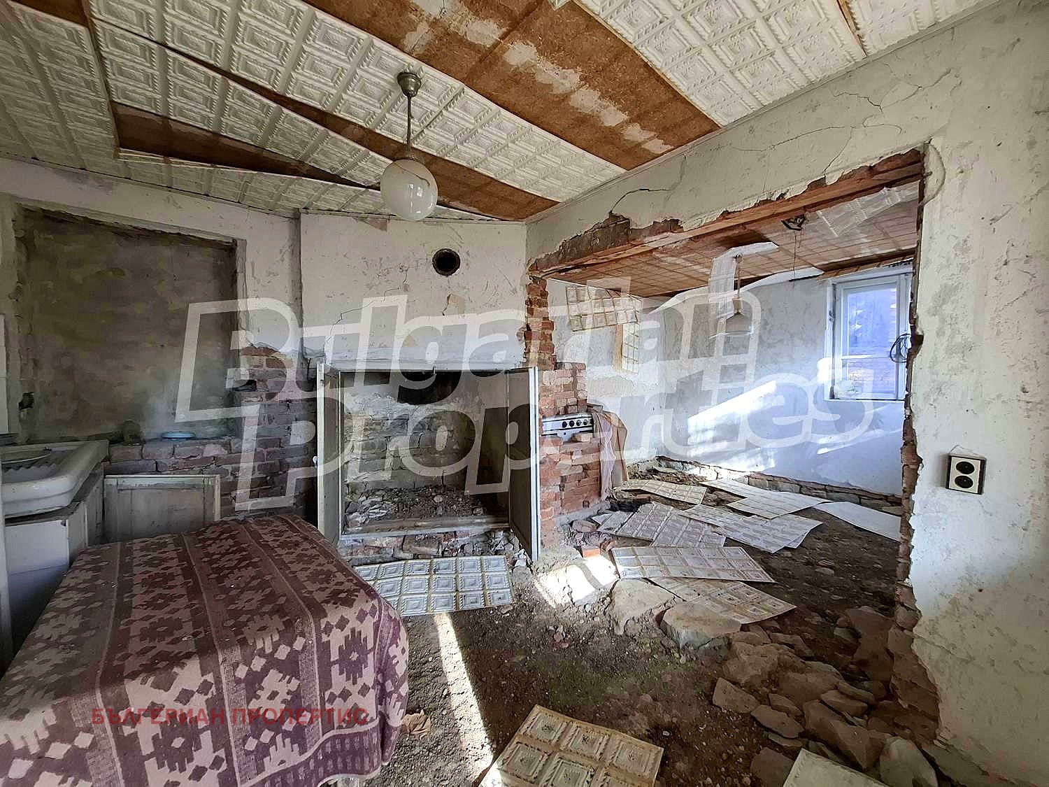 Първи етаж - две стаи, като едната е била с предназначение за склад-маза, а другата с камина е ползвана за всекидневна и кухня.