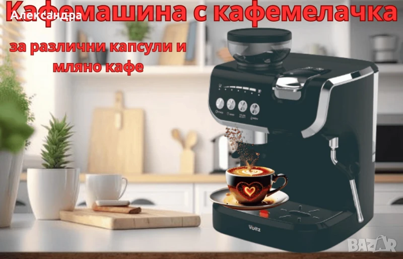 Кафемашина с вградена кафемелачка Voltz, 2672W, резервоар 2 литра, 5 адаптера → Обява 51058987