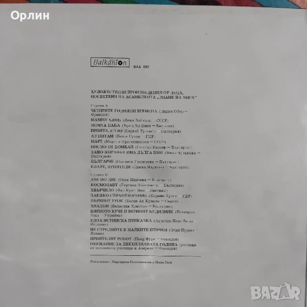 Грамофонна плоча-Художествени произведения от деца - ВАА 892 → Обява 51058990