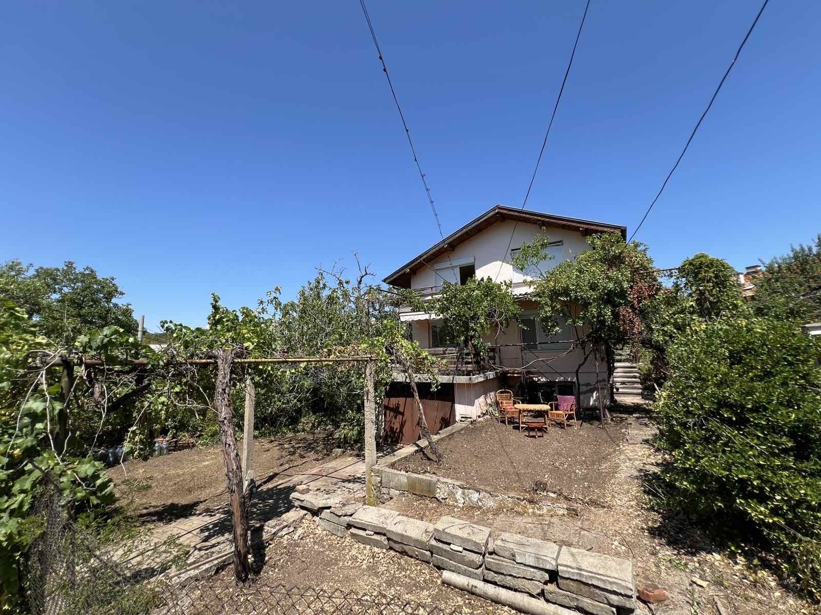 Във вилната зона на селото, на тихо място, лице на чакълиран път, на 30м от асфалтов път. Триетажна тухлена къща със стоманобетонни плочи: първи етаж - голям гараж, механа с камина, стая, тоалетна; втори етаж - PVC дограма, готварна на теракота, две стаи на естествен паркет, едната е с камина, баня с тоалетна на теракота и фаянс с прозорец, две веранди на мозайка, едната е много голяма; трети етаж - две стаи и две тераси на мозайка. Имотът е за ремонт, но местоположението му е прекрасно. Дворно място 660кв.м. Агенцията разполага с ключ.
