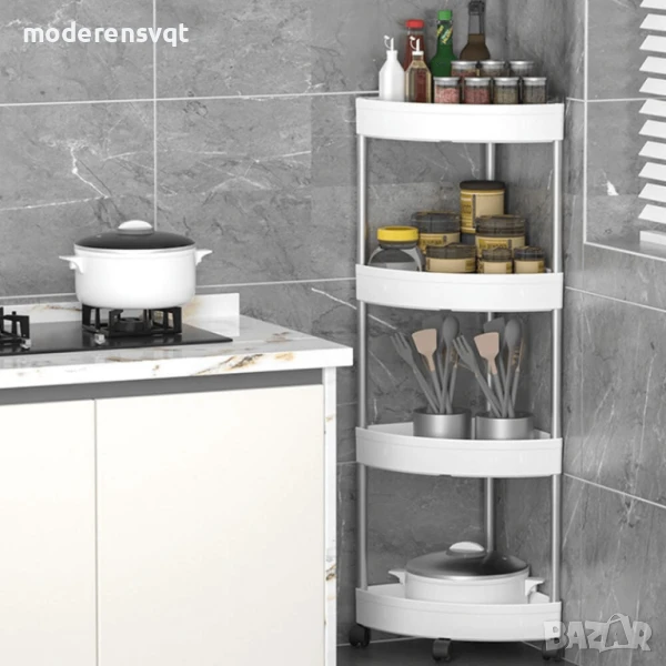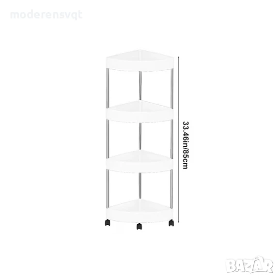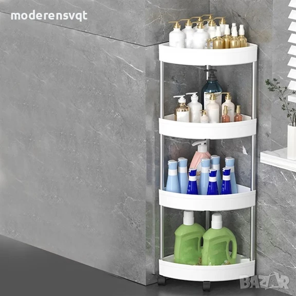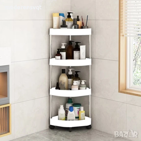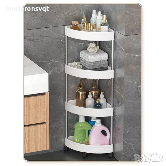 Ъглов органайзер за баня с подвижен дизайн, 4-степенни колелца и отвори за оттичане.