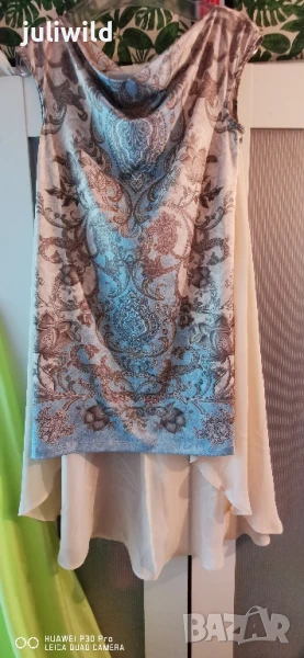 Го 47см.,асиметрична : дължина отпред 77см.отзад 102см.Предница меко, еластично трико, гръб полупрозрачен шифон.