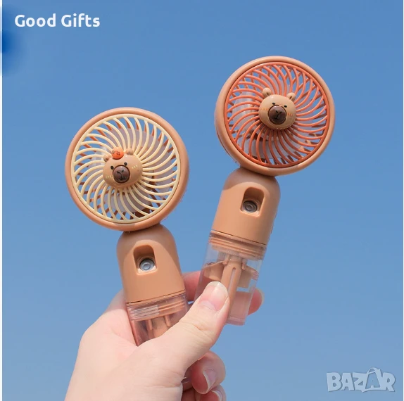 Преносим ръчен вентилатор Капибара с водна мъгла- мини вентилатор с USB зареждане и сладък дизайн