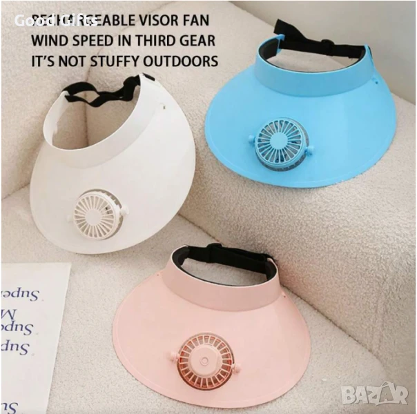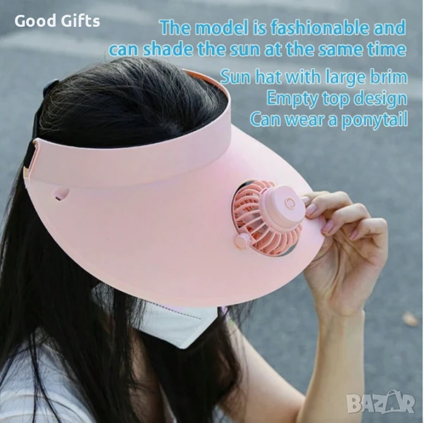 Шапка с козирка и вграден вентилатор – USB зареждане, 3 скорости, въртяща се перка, защита от слънце