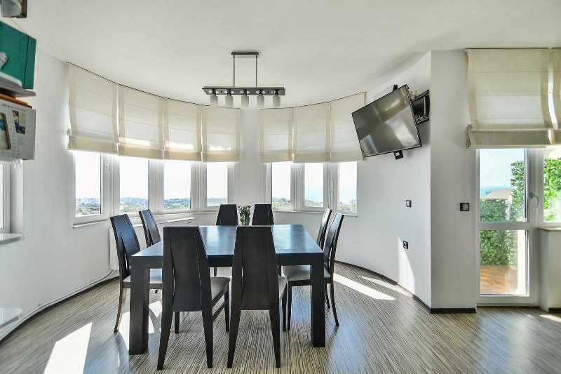 Жилището е с площ от 110 кв.м. се състои от: входно антре, просторен дневен тракт с кухненски кът, две спални, две тераси с прекрасна морска панорама, баня, тоалет и прилежащта маза.