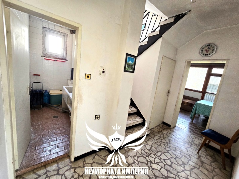 Цялата къща е с бетонни плочи, с права вода(сменени пвц - входни тръби) със септична яма(като на 55м. от къщата е обходния/обратния канал) и електромер(нова ел.кутия).Необзаведена и оборудвана, със двойна дървена дограма, бойлер, пералня, печка, хладилник и др.
