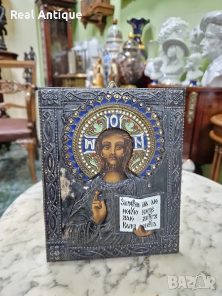 Прекрасна антикварна руска икона с емайл → Обява 51061200