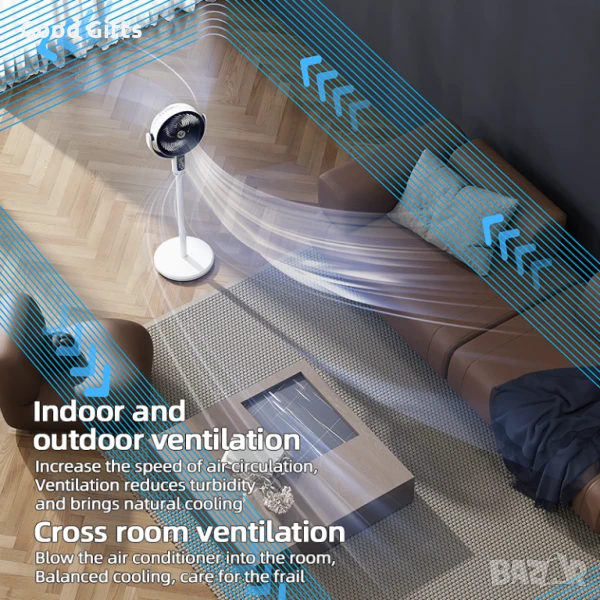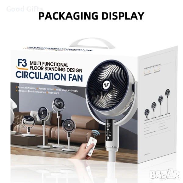 Насладете се на перфектната комбинация от ефективност, гъвкавост и комфорт с този мултифункционален вентилатор с дистанционно управление.