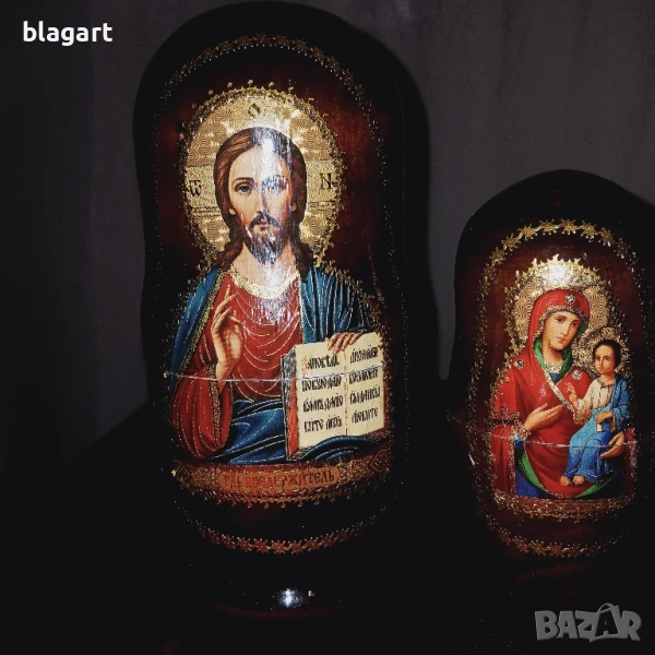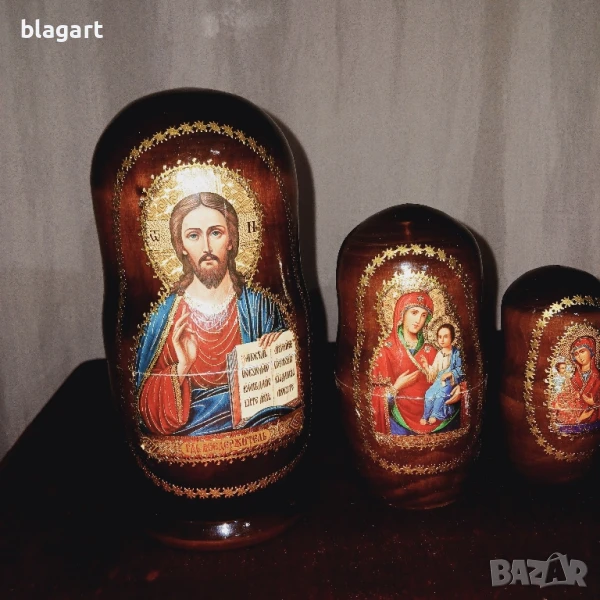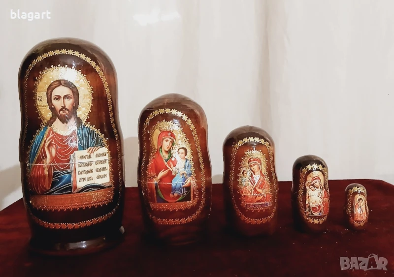 Руска матрьошка с икони 5 бр. комплект Материал дърво,позлата,лак...