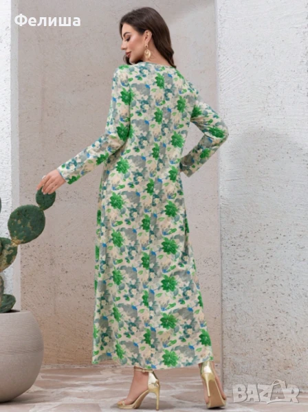Прекрасна Дълга Памучна Рокля с Луксозна Бродерия в Тревисто Зелен Цвят → Обява 51062191