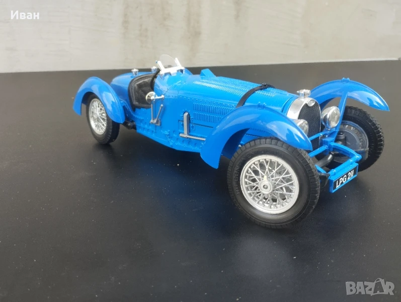Това е умален модел на автомобил Bugatti Type 59 от 1934 г., произведен от Bburago в мащаб 1:18.Моделът е с регистрационен номер "LPG 211".Той е детайлна реплика на състезателния автомобил Bugatti Type 59, известен с успехите си през 30-те години на миналия век.Bburago е италиански производител на умалени модели на автомобили, известен с качеството и детайлността на своите продукти.Такива модели са популярни сред колекционерите и ентусиастите на автомобили.