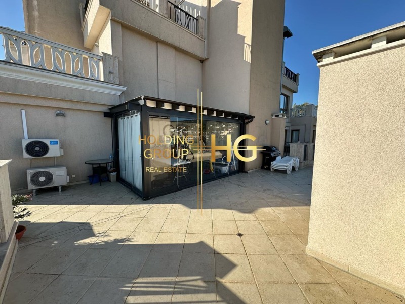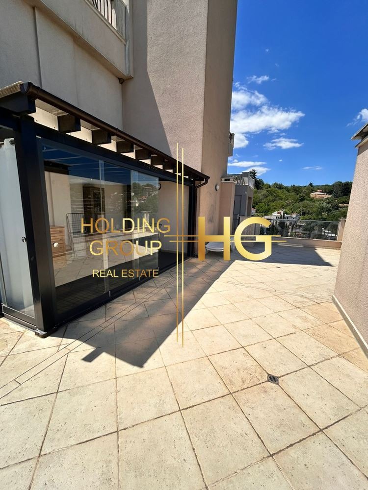 Holding Group Недвижими Имоти предлага на своите клиенти панорамен двустаен апартамент в затворен комплекс на десет минути от центъра на Варна. Състои се от кухня с дневна част, спалня и санитарен възел. Жилището е с прекрасна гледка, има огромна тераса със затворена пергола, барбекю.