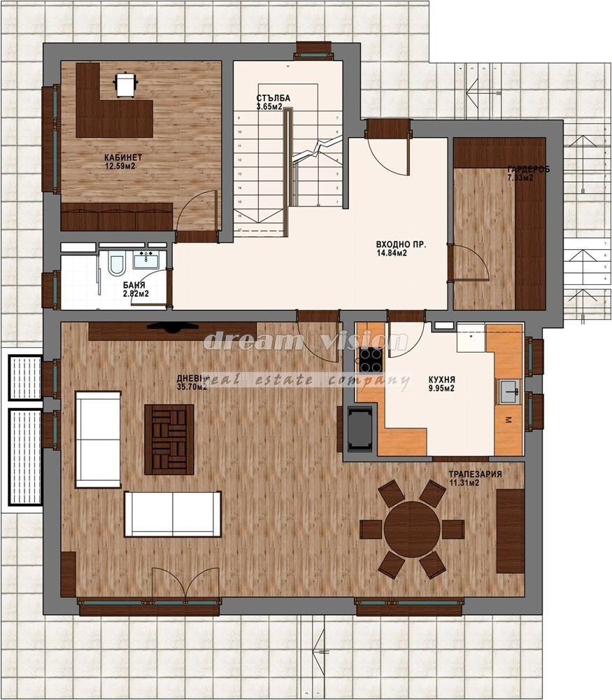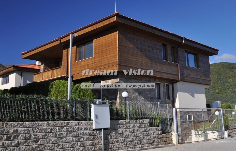 ДРИЙМ ВИЖЪН НЕДВИЖИМИ ИМОТИ Продава къща част от затворен комплекс намиращ се в с. Бистрица. Разположен е на няколко минути пеша от началото на Парк Витоша и само на 6 км от околовръстното шосе на София. Далеч от шума на града, в сигурна и охраняема зона с професионална поддръжка. Местоположението на комплексът благоприятства с чистия въздух, тишината и спокойна среда за живот.Къщите се открояват с архитектура, която наподобява традиционния за България възрожденски стил с еркерни етажи, облицовани с дърво и камък. Всяка къща има прилежащо зелено пространство затревен двор и декоративна растителност. Къщата е със следното разпределение на сутерен - помещение подходящо за фитнес, баня с тоалетна, котелно, гараж за две коли, мокро помещение. Партерен етаж: антре, просторна дневна с кухня, трапезария с излаз към веранда, баня с тоалетна, кабинет, гардеробна. Първи етаж: четири спални, три бани с тоалетни, тераси. Комплексът е с напълно изградена инфраструктурата, канализация и пречиствателни станции, собствен водоизточник, електрозахранване, пътна комуникация; разполага с 24-часова физическа охрана .Оферта в агенцията 11009. Всички наши обяви ги работим с колеги. Още наши оферти може да намерите на www.dreamvision.bg Телефони за връзка: 02/421 96 35 ; 0886 13 22 91 Димитър Георгиев.