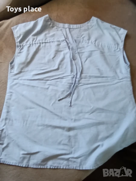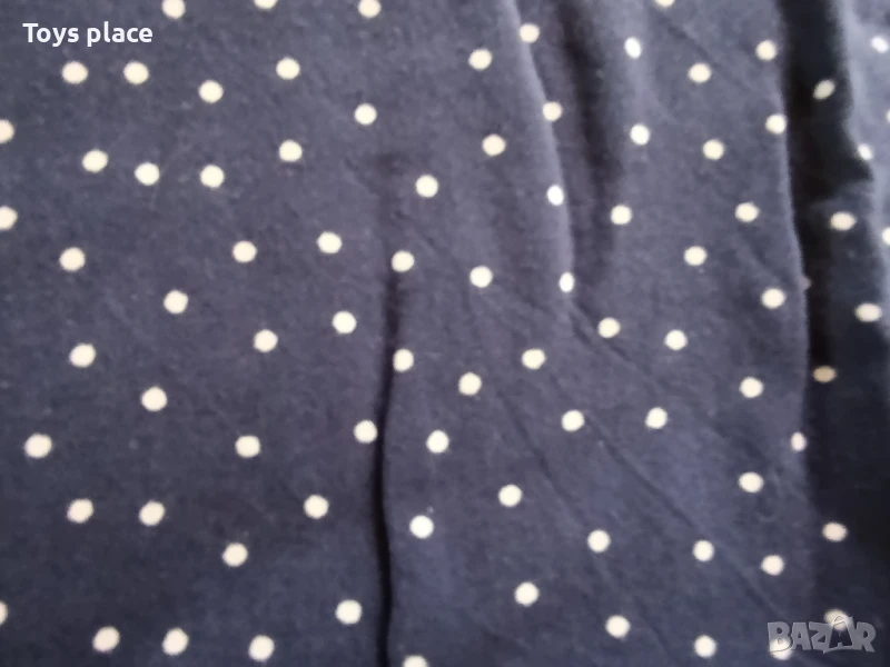 Тъмно синята на точки е като блузка, но материята е тип риза, носена с нормални леки следи от употреба