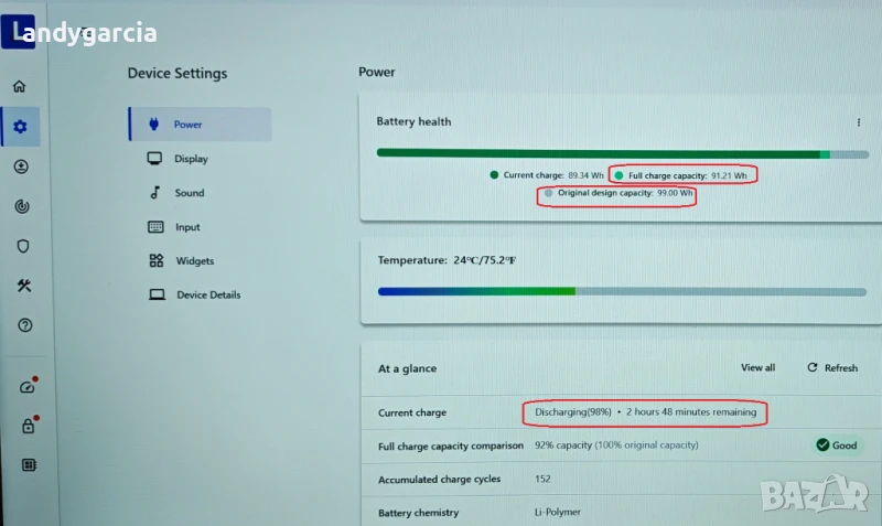 - батерия на 92% от реалния си 99Wh капацитет, 92Wh капацитет и издържливост до 3:00-4:00 часа и повече...НА СНИМКИТЕ.