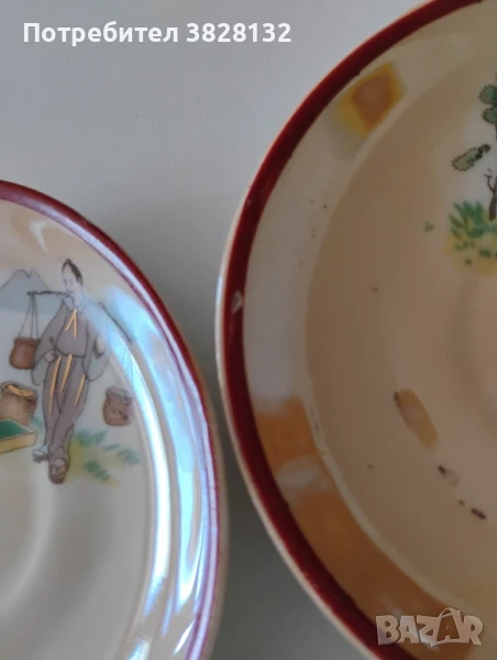 снимки 1-3:Обща цена за 3 бр.старини винтидж чинийки цена 25лв., от миналия век, за допълване, диаметър 9,5см, китайско изкуство, дизайн и архитектура, популярна през 17-ти и 18-ти век. Едната чинийка има забележка (снимка ном.3). снимки 4 и 5 цена 30лв.порцелан, от средата на миналия век, здрави, цената е за трите