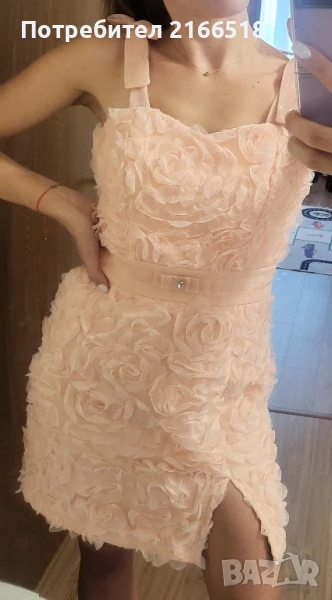 Роклята е без забележки, обличана веднъж за няколко часа. Размер М, но според мен е леко умалена, тъй като аз нося размер С. Няма еластичност. Изпращам с преглед и тест.