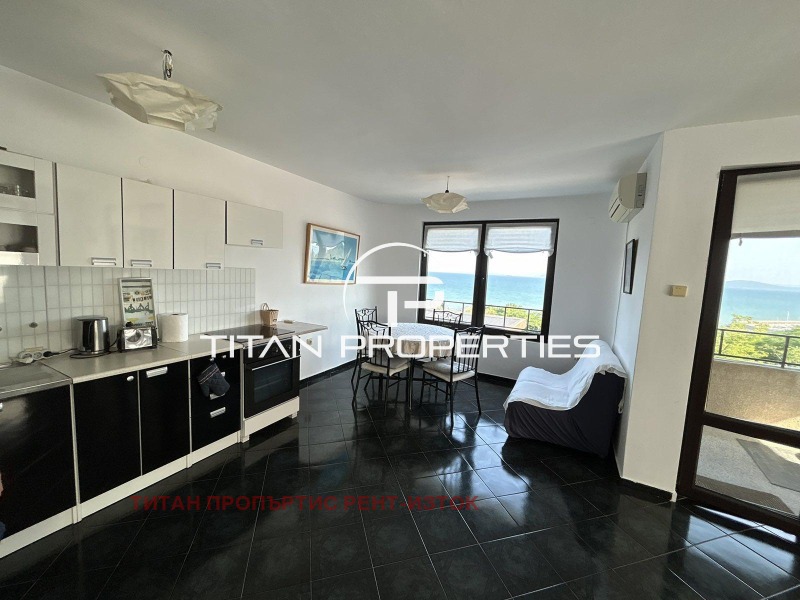 Имотът разполага с площ от 80 кв.м с функционално разпределение, включващо: коридор, хол с бокс кухня и преходна спалня, отделна спалня, баня с тоалетна, мокро помещение и тераса с красива гледка към морето.