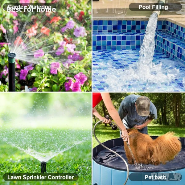 Напояване по време: WiFi таймерът за напояване има 3 плана за поливане и 2 режима на поливане. Всеки с различно време за начало, продължителност и честота на поливане (пон-нед). В режим на напояване поливането протича непрекъснато, подходящо за тревни площи и басейни. В режим на мъгла поливането продължава от 5 до 59 секунди и продължава от 1 до 15 минути и 59 секунди. Това е подходящо за системи за мъгла, лятно охлаждане на открито и намаляване на праха.