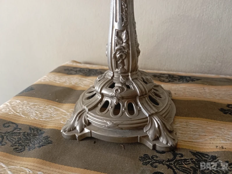 Метална основа,кристален съд.Има драскотина на кристалния съд,не може да се види на снимка ....не е счупено защото е само на едната повърхност.