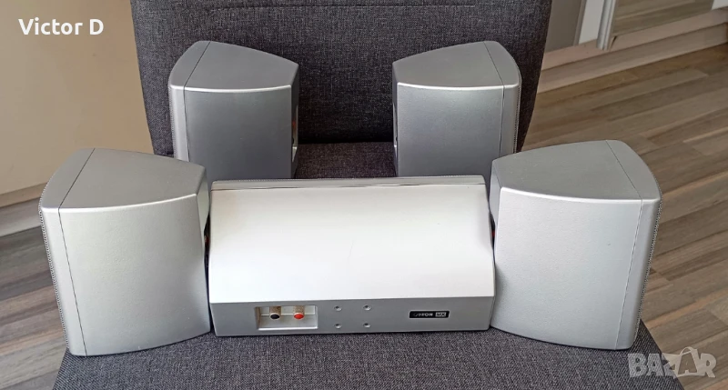 4 броя еднакви двулентови сателита и един център CANTON.Тествани.Перфектни технически.Добър визуален вид. Номинална мощност 40w, музикална мощност 70w, импеданс 4/8ohm, честотна лента 120Hz-25kHz.ТЕХНИЧЕСКИ ХАРАКТЕРИСТИКИ:на центъра