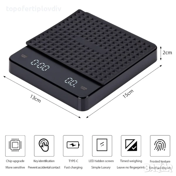 Висока прецизност: Продуктът има високопрецизен сензор с точност от 0,1 г (електронните везни започват от 0,5 г и се претеглят до 0,1 г). Диапазонът на претегляне е от 0,1 г до 3000 г.
